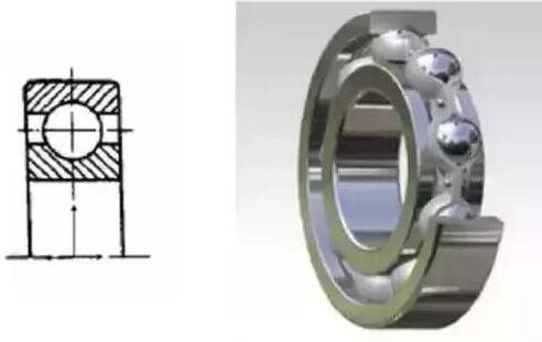 在結(jié)構(gòu)上深溝球軸承的每個套圈均具有橫截面大約為球的赤道圓周長的三分之一的連續(xù)溝型滾道。深溝球軸承主要用于承受徑向載荷,也可承受一定的軸向載荷。