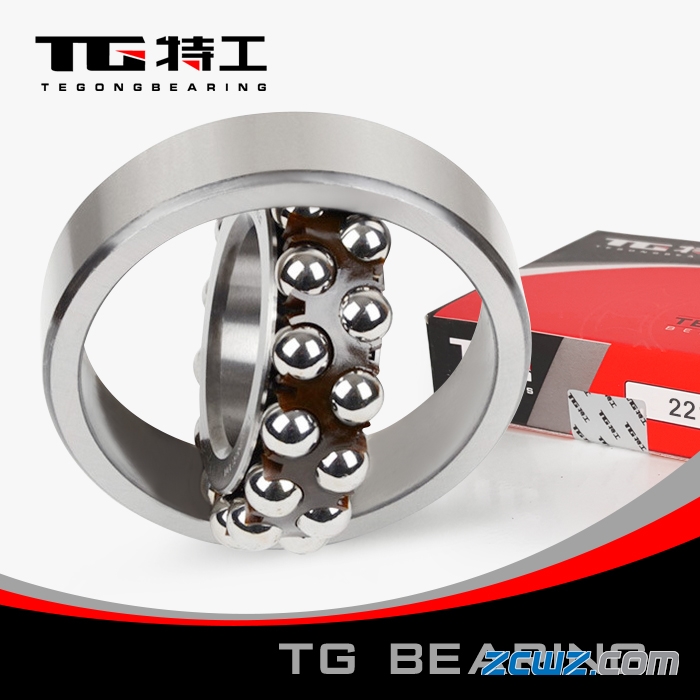 調(diào)心球軸承由兩列鋼球,內(nèi)圈由兩條滾道,外圈滾道為內(nèi)球面形,具有自動調(diào)心性能;用于承受徑向載荷,也能承受少量的雙向軸向載荷。內(nèi)外圈軸線相對偏斜允許0.5°~2°,適用于多支點軸、彎曲剛度小的軸以及難于精確對中的支承。